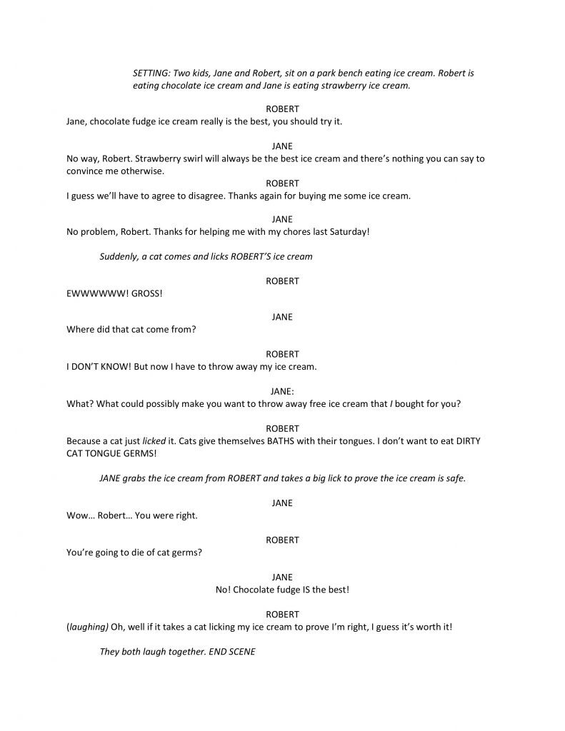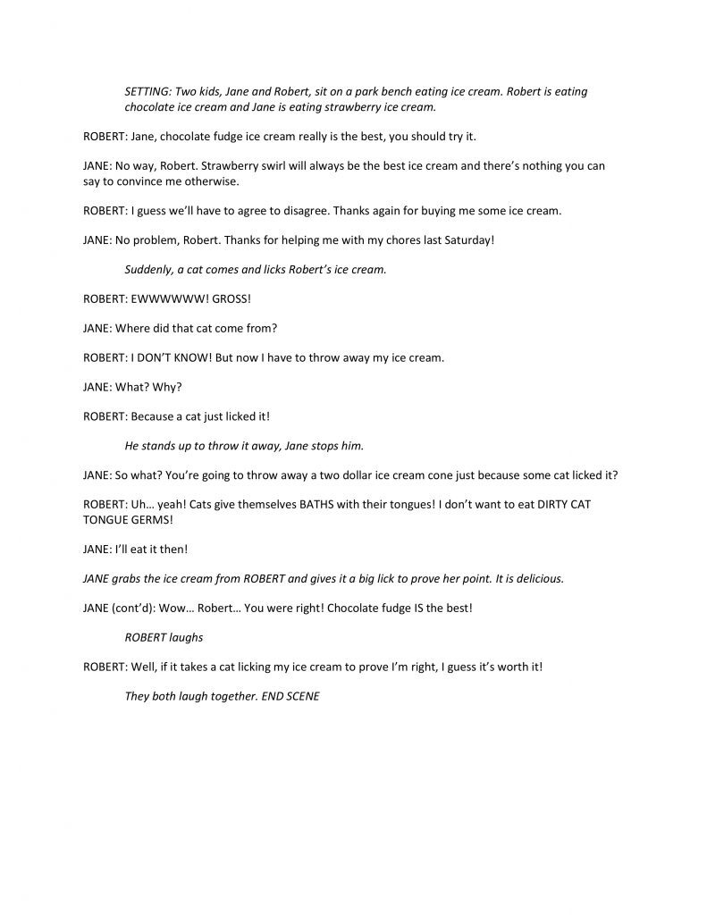 - This story must be a SCRIPT. (We have two examples for you below!)